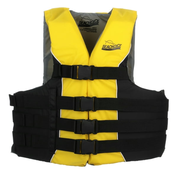 Seachoice Level 70 Life Jacket Deluxe Adjustable 4 Belt Ski Vest Yellow And Black Size L Xl 40 52 In Chest Walmart Com